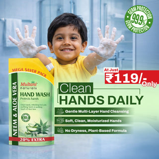 Multani Naturals Neem Tulsi Soap I Ayurvedic Bath Soap for Men & Women I Handmade Herbal Soap Bar with Neem & Tulsi Extract & Glycerin I Gentle Cleanser for Skin with Antioxidants, Fights Dryness with Every Use I Kind to all Skin
