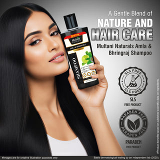 Multani Naturals Amla & Bhringraj Shampoo | Hair Growth, Dandruff Control & Scalp Irritation Relief | Paraben & SLS Free | Dermatologically Tested | 270ml