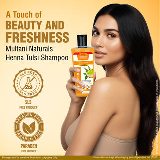 Multani Naturals Henna & Tulsi Shampoo | For Silkier & Denser Hair | Improves Scalp Health | For Hair Growth & Dandruff Control | SLS & Paraben Free | Dermatologically Tested