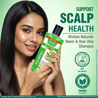 Multani Naturals Neem & Aloe Vera Shampoo | Anti-Dandruff & Scalp Cooling | Strengthens Hair Roots | Supports Scalp Health| SLS & Paraben Free | Dermatologically Tested| For All Hair Types