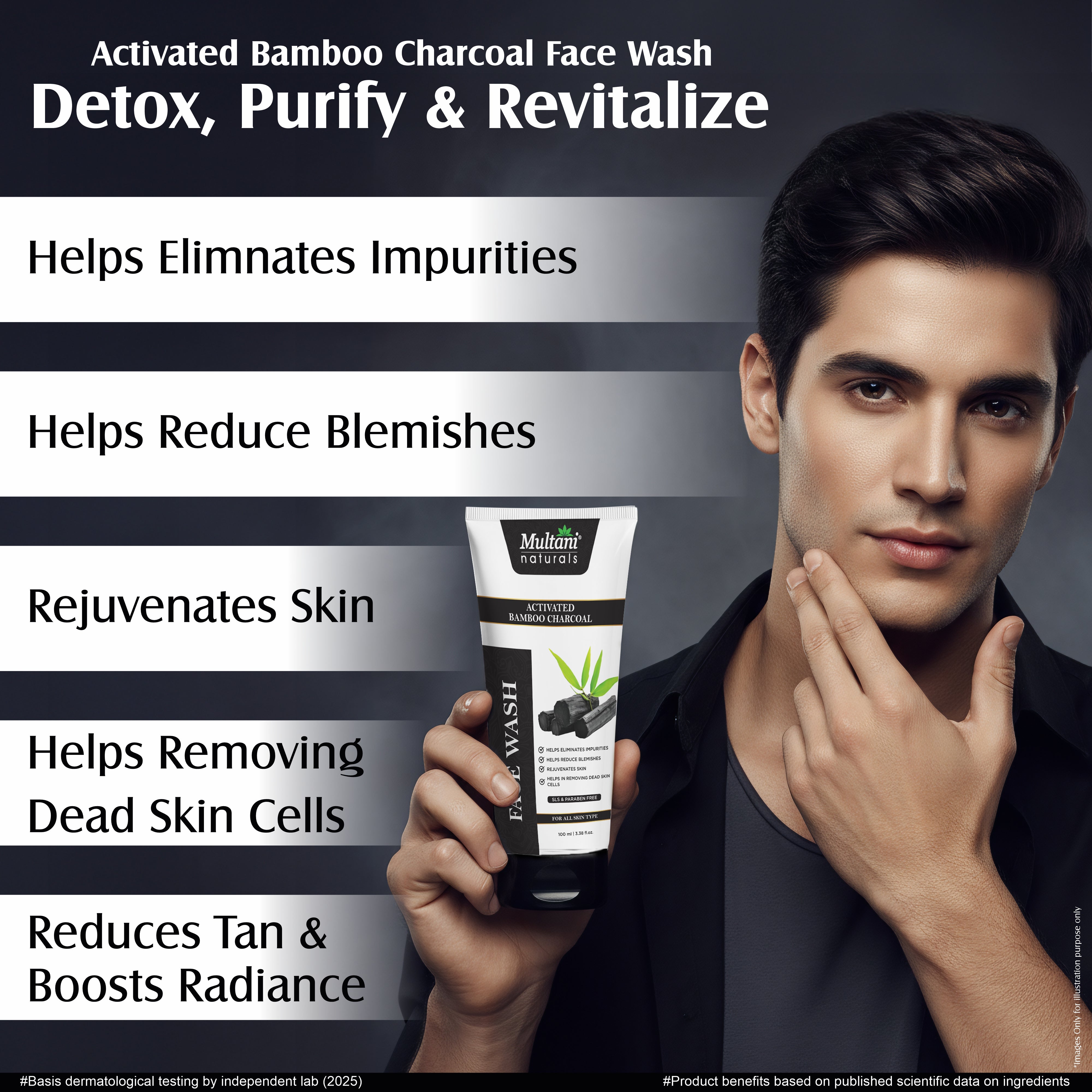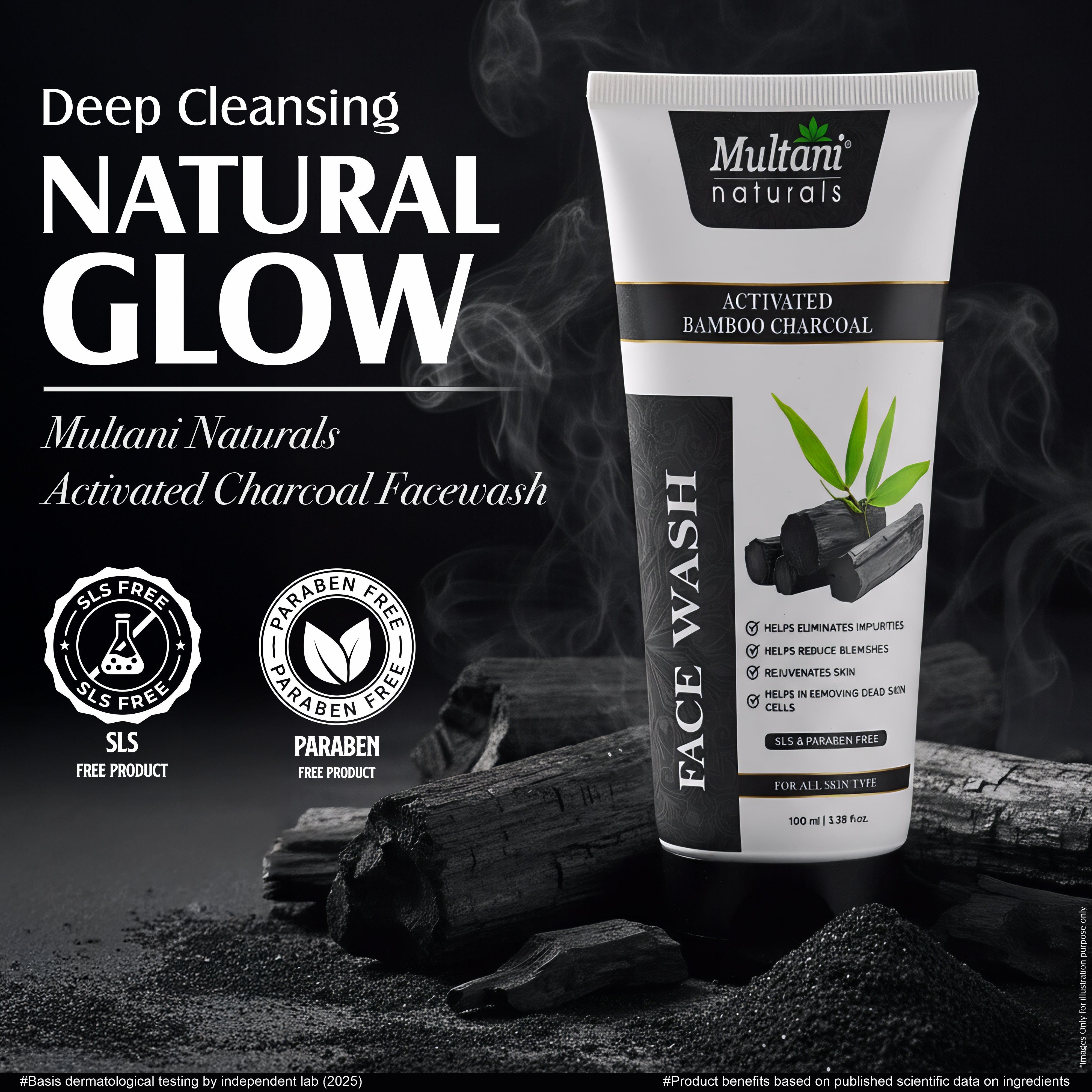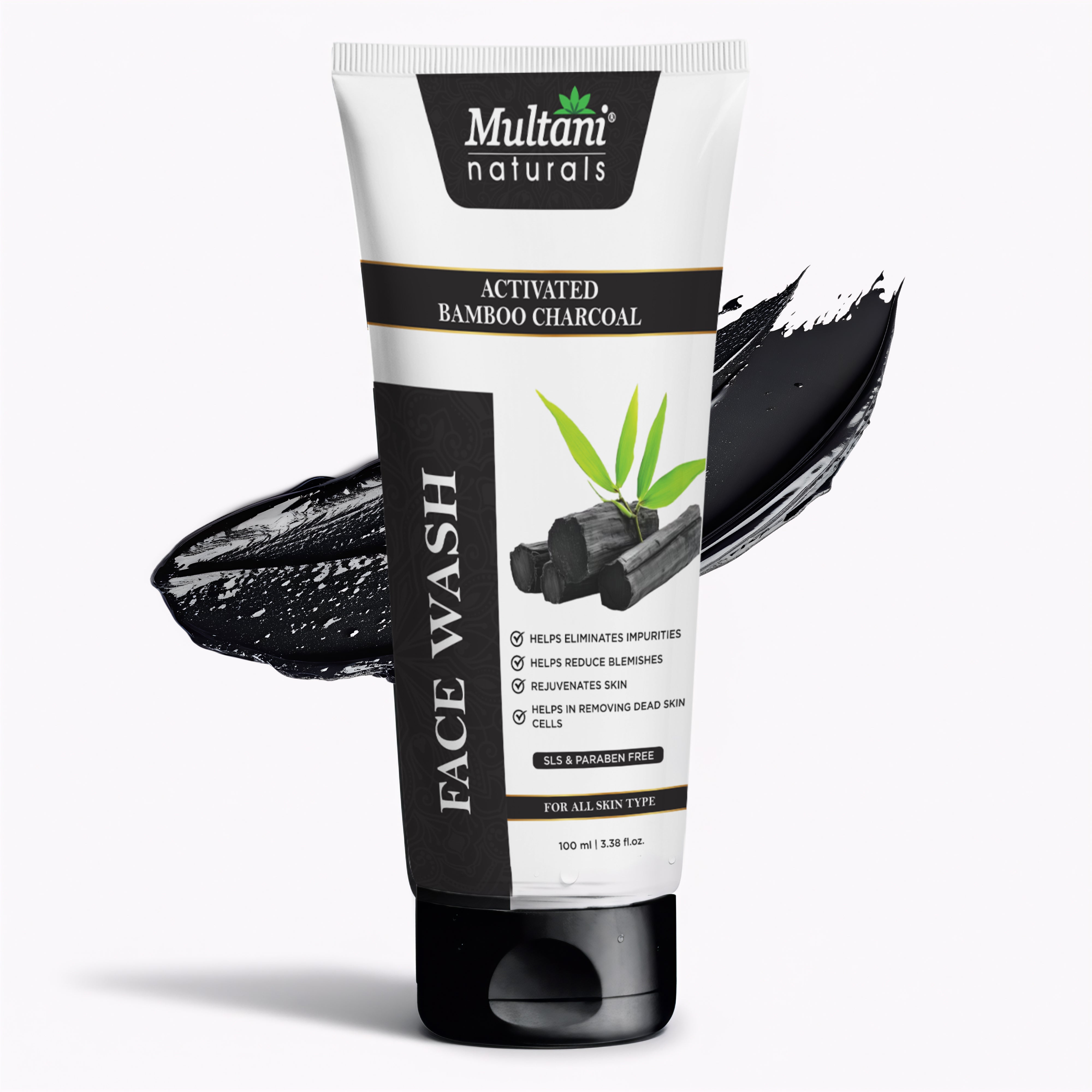 Generic Product Name: Multani Naturals Charcoal Face Wash for Men & Women | Detox & Deep Cleanse with Activated Bamboo Charcoal | Oil-Control, Acne-Prone Skin | 100 Ml