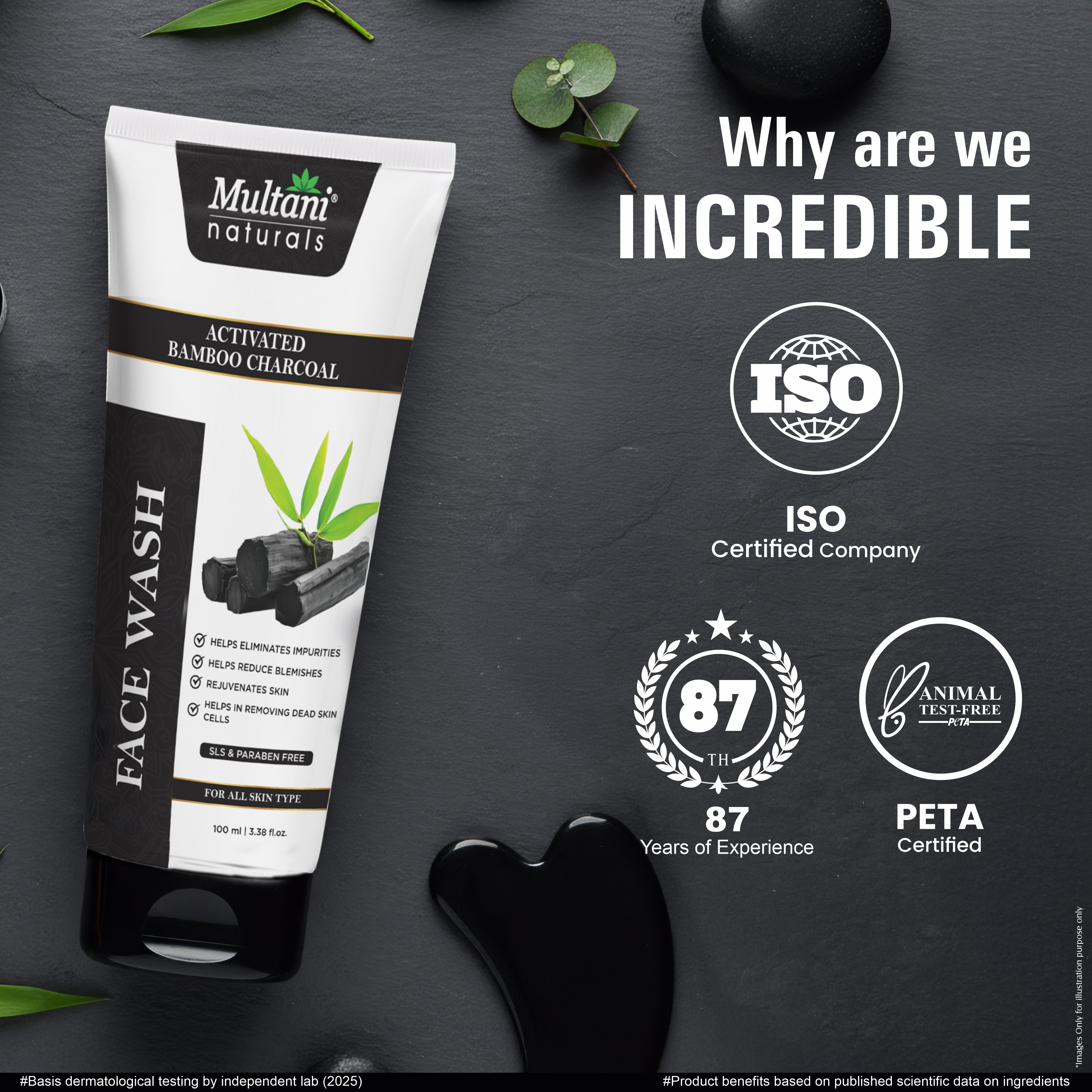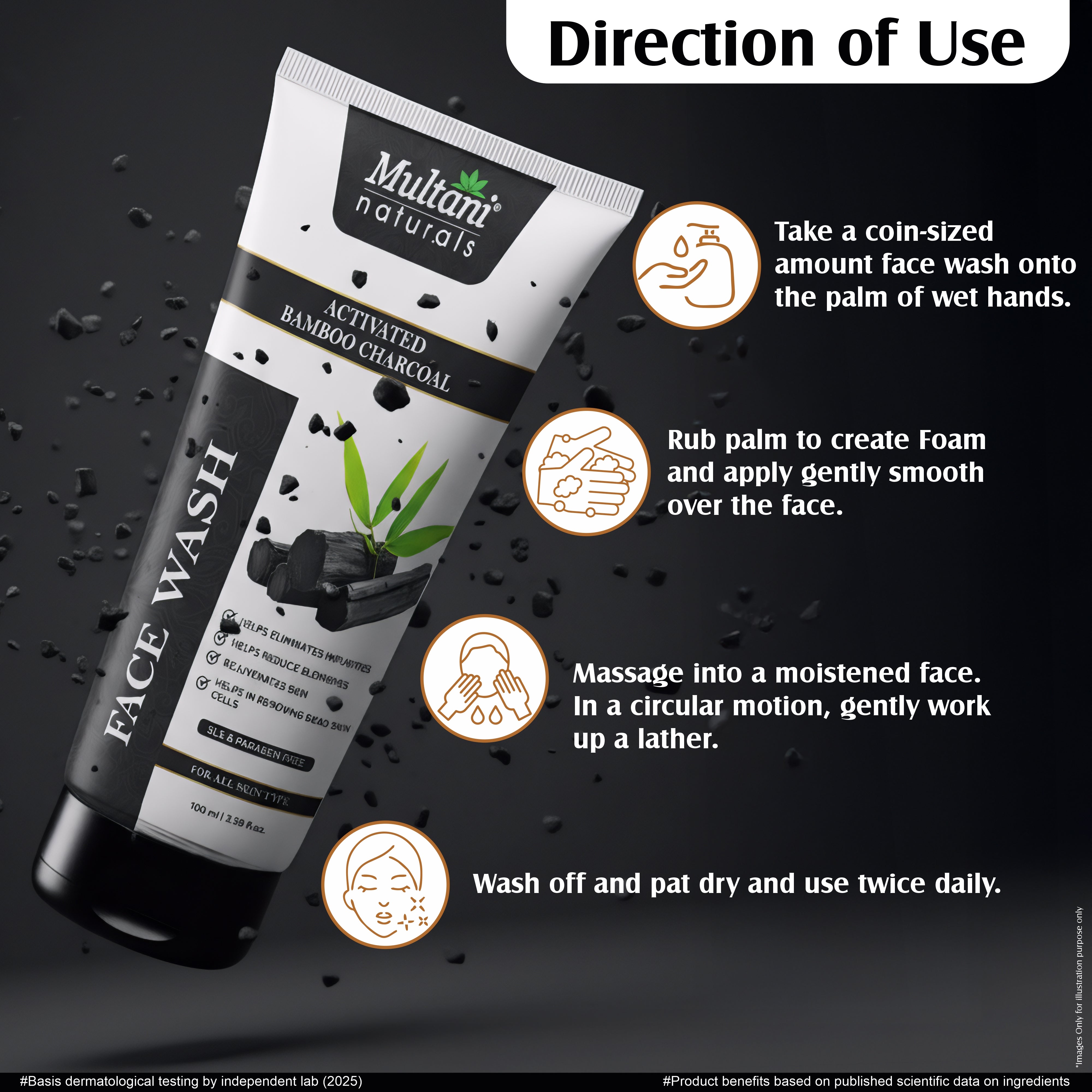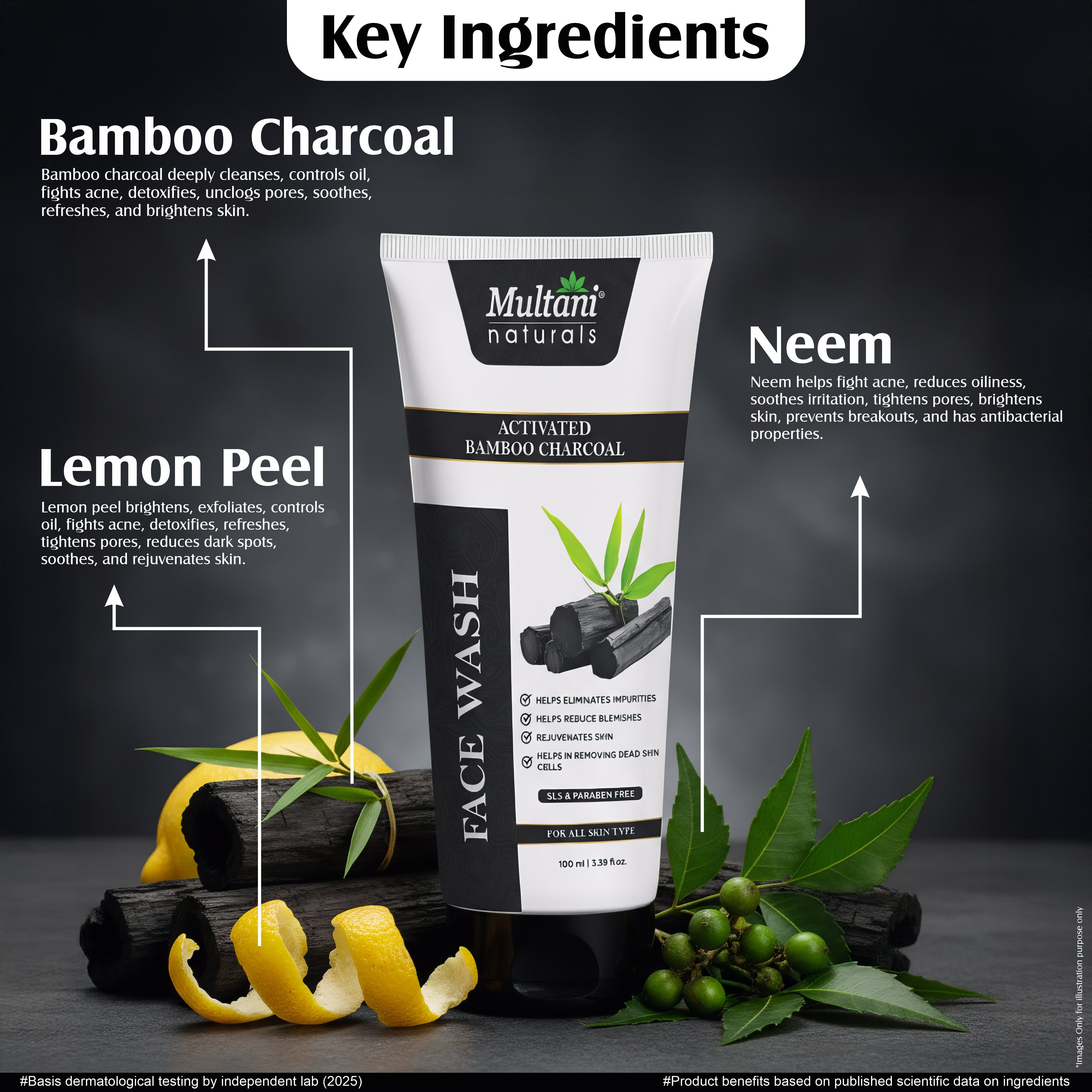 Generic Product Name: Multani Naturals Charcoal Face Wash for Men & Women | Detox & Deep Cleanse with Activated Bamboo Charcoal | Oil-Control, Acne-Prone Skin | 100 Ml