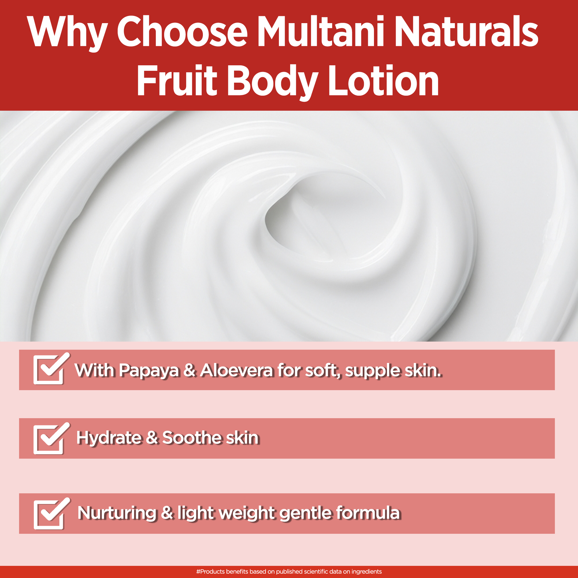 Generic Product Name: Multani Naturals Fruit Body Lotion with aloevera juice & papaya | for soft smooth skin