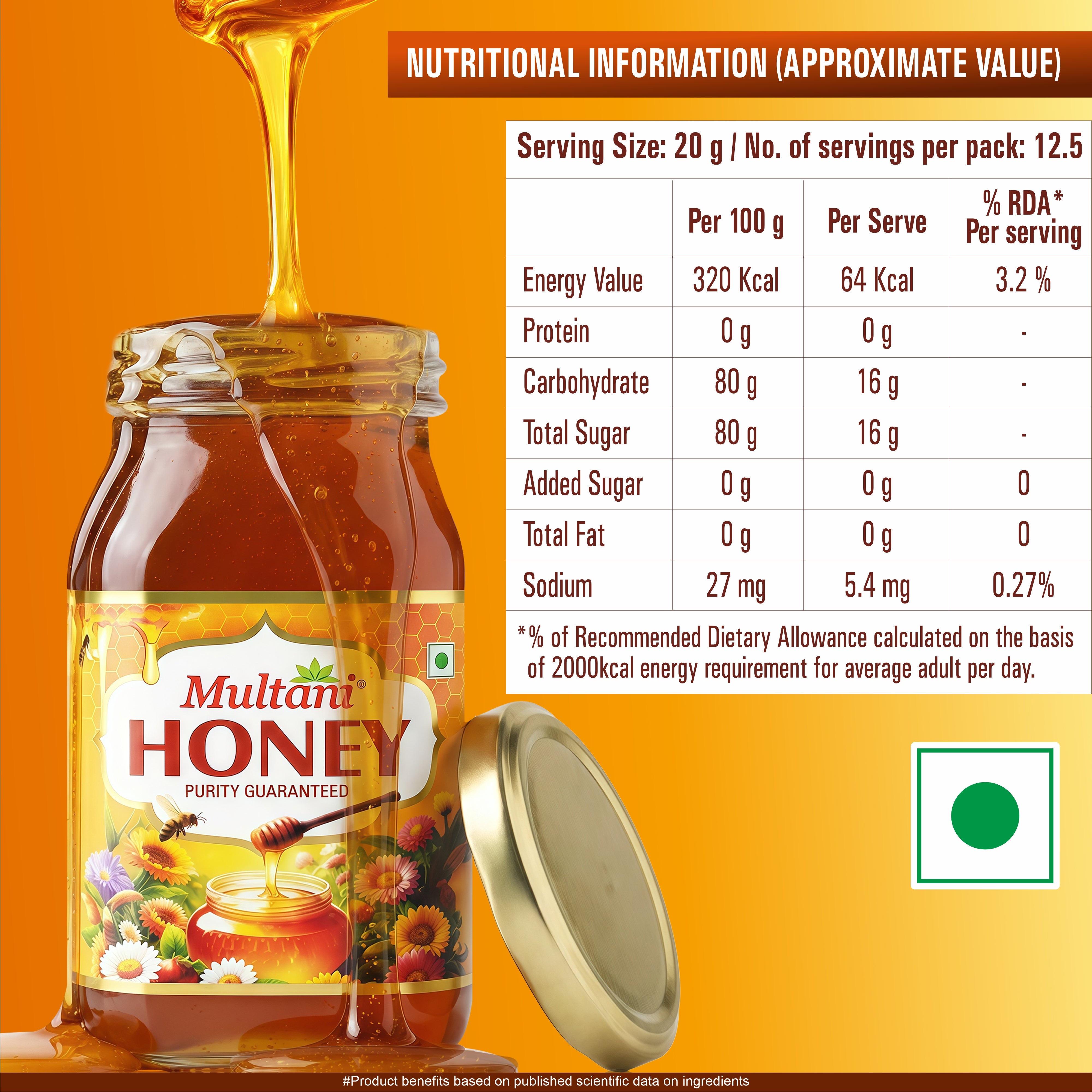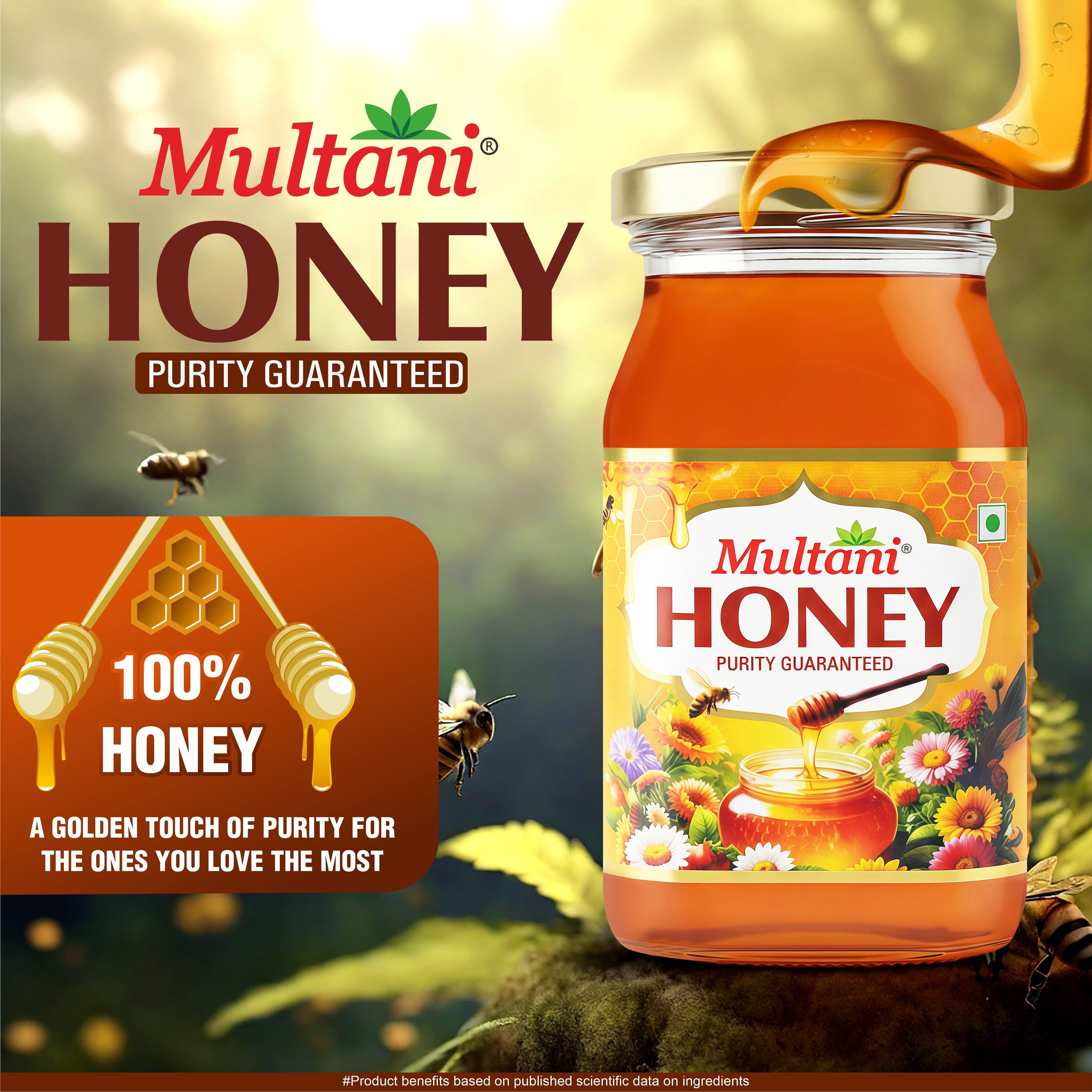 Multani Honey Active is crafted from the rich and natural sweetness of Sundarban Forest Honey, known for its exceptional purity, aroma, and nutritional value. Collected directly from forest regions, this honey is 100% pure with no sugar adulteration, ensuring you get only natural and authentic honey in every drop.