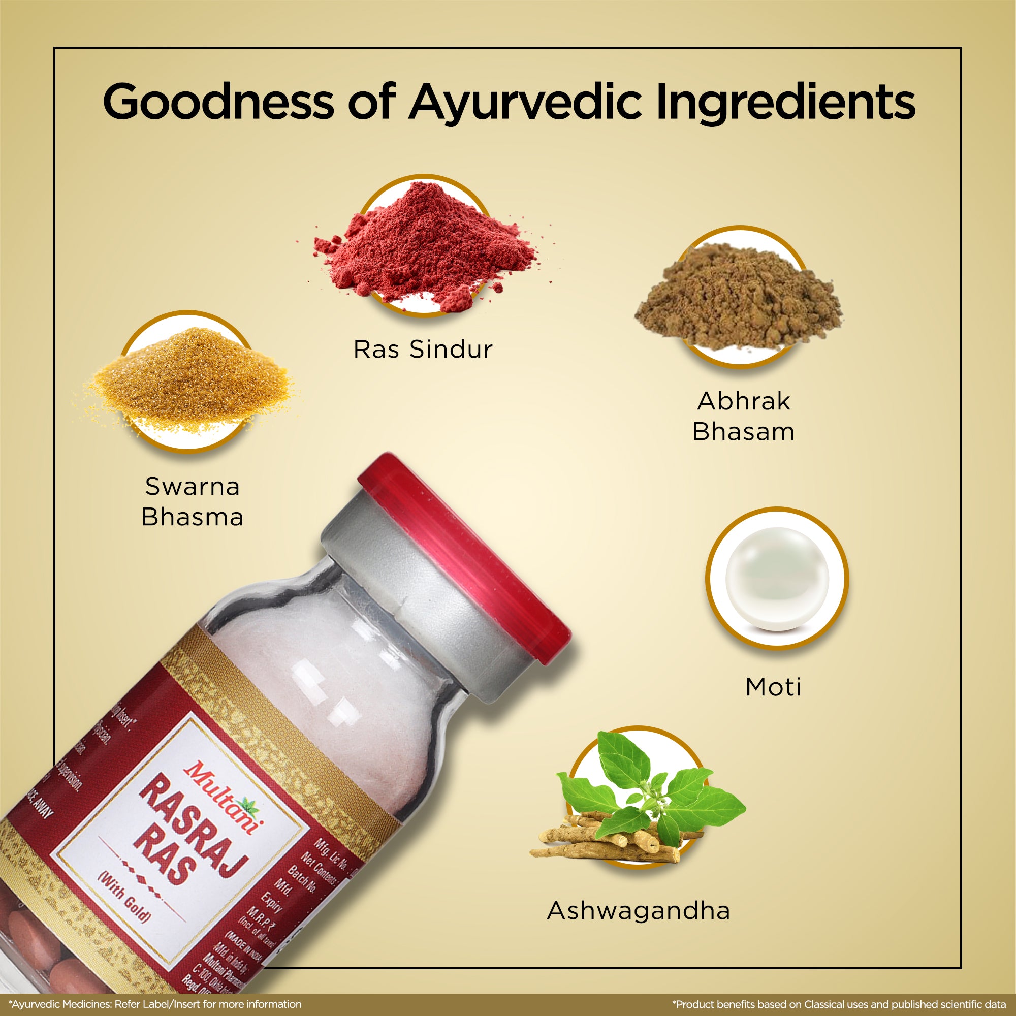 Multani Rasraj Ras with Gold |Helps in neuromuscular conditions such as paralysis, hemiplegia - 10 Tab (160/Per Tablet)