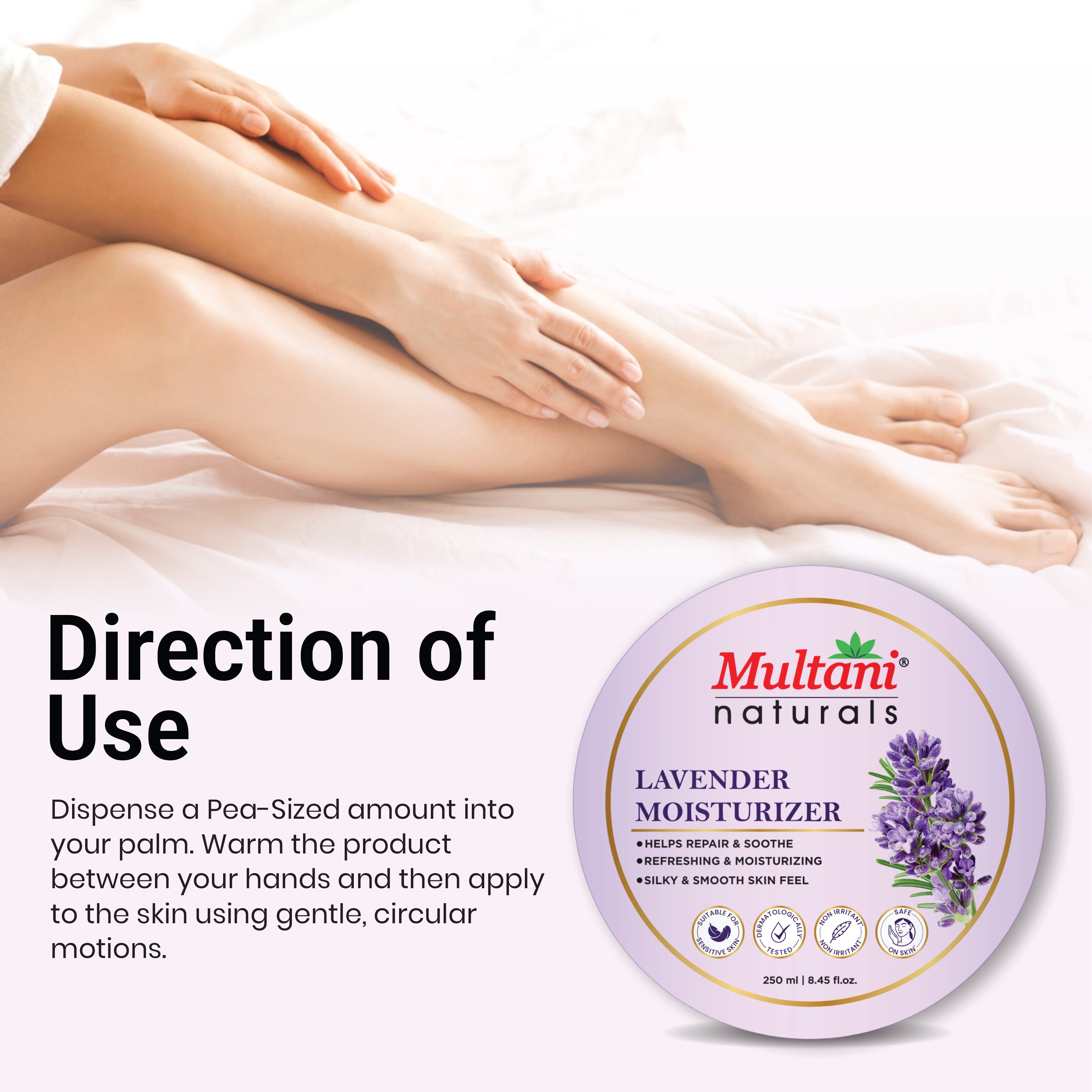 Generic Product Name: Multani Naturals Lavender Moisturizer 250 ML | Helps Repair & Soothe | Refreshing, Moisturizing | Silky & Smooth Skin Feel