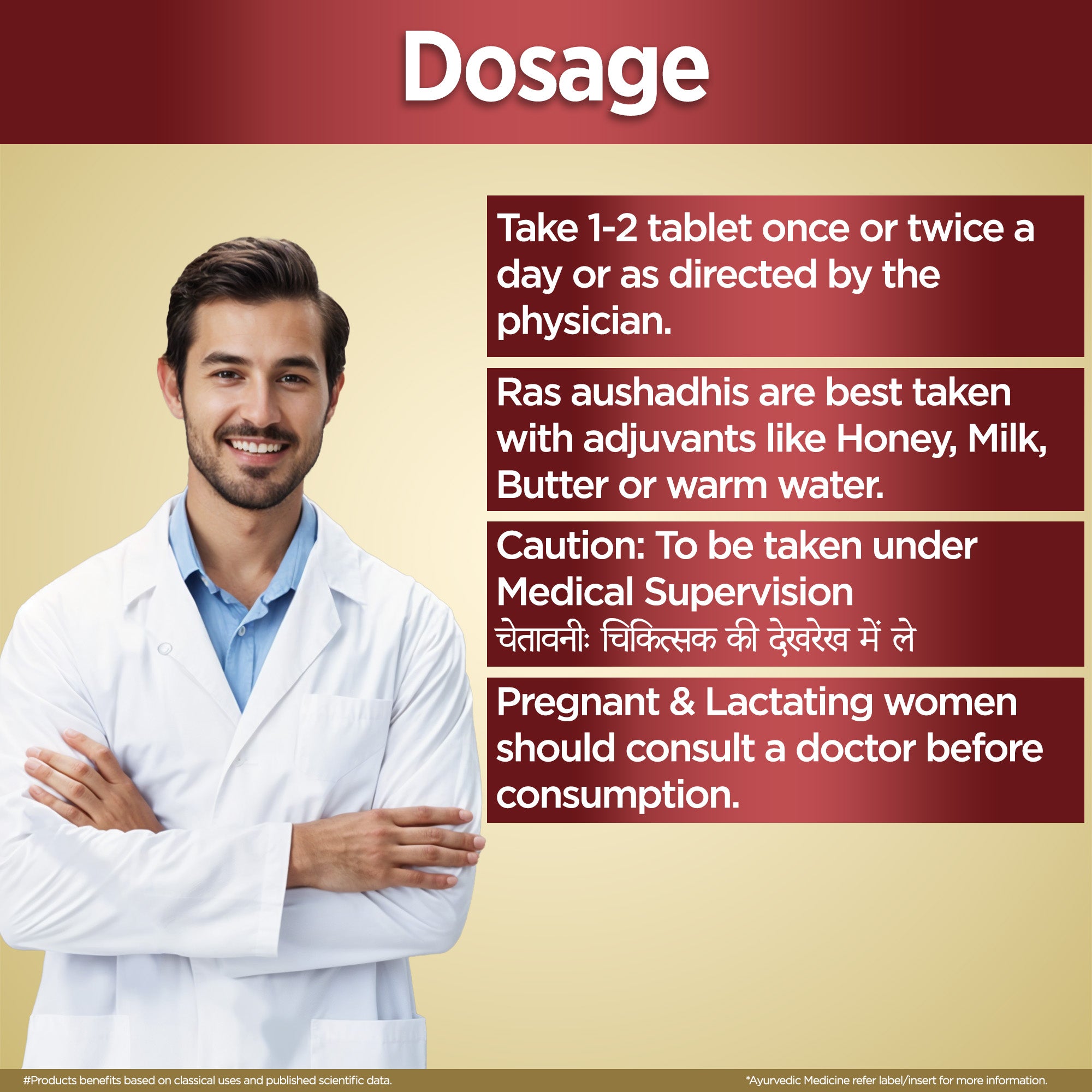 "1. Dosage: Take 1 tablet once or twice a day with honey, ghee, or lukewarm water, or as directed by an Ayurvedic physician.