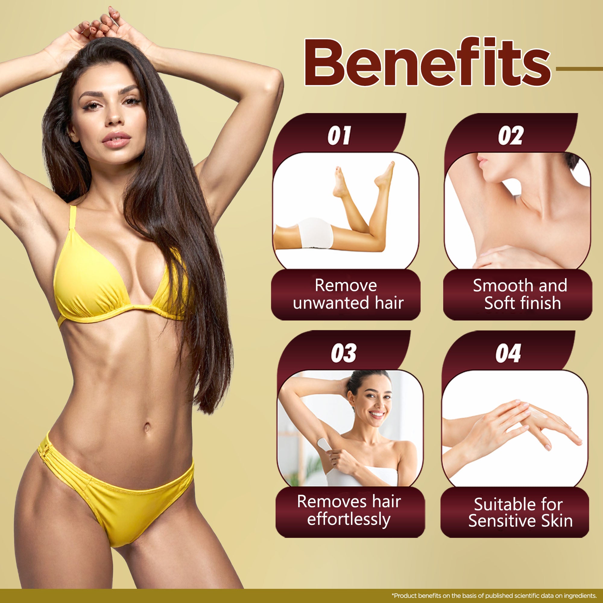 1. This gentle formula removes unwanted hair in just a few minutes, leaving your skin feeling luxuriously soft and smooth.
