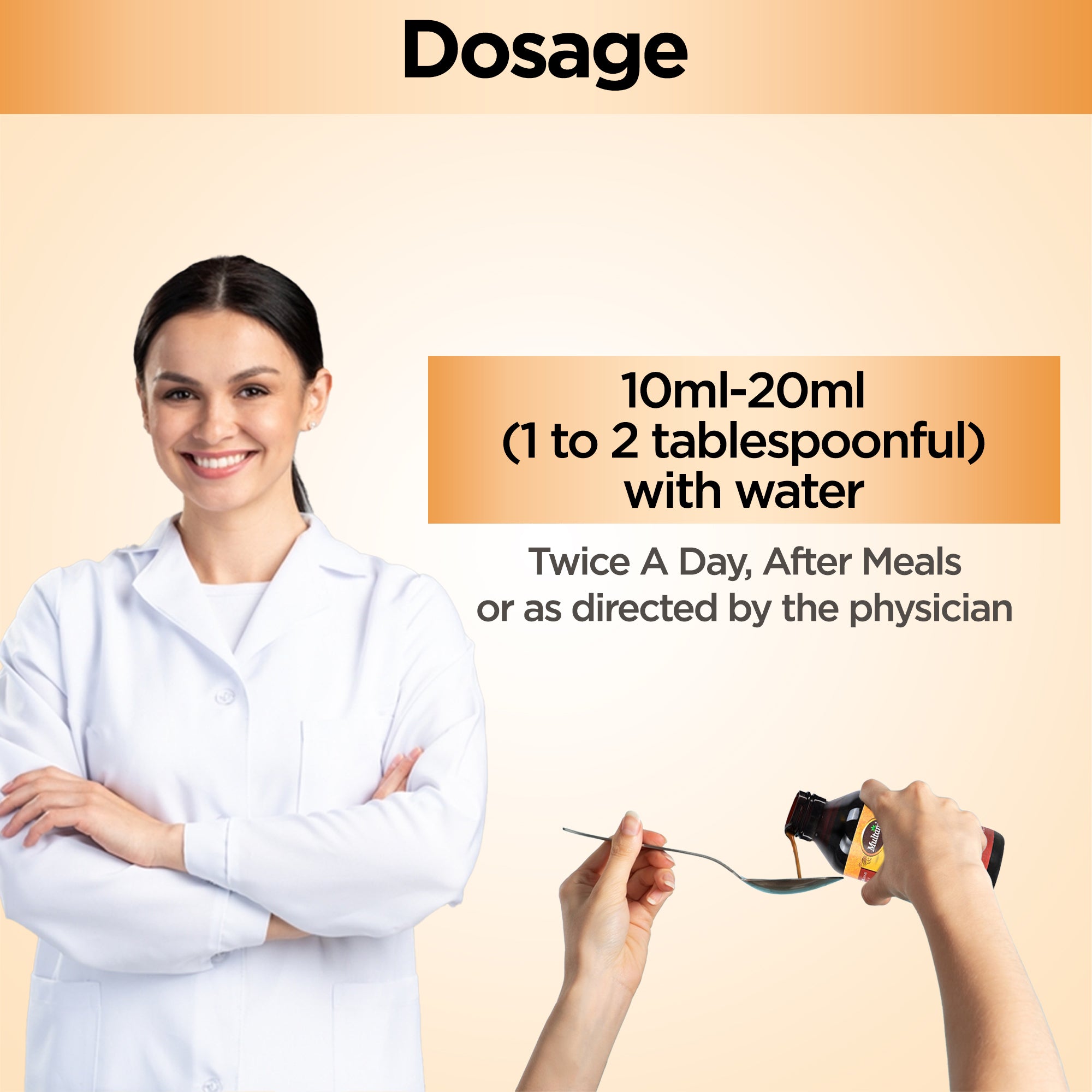 10 Ml-20Ml (1 to 2 tablespoonful) with water, twice a day after meals or as directed by the physician.