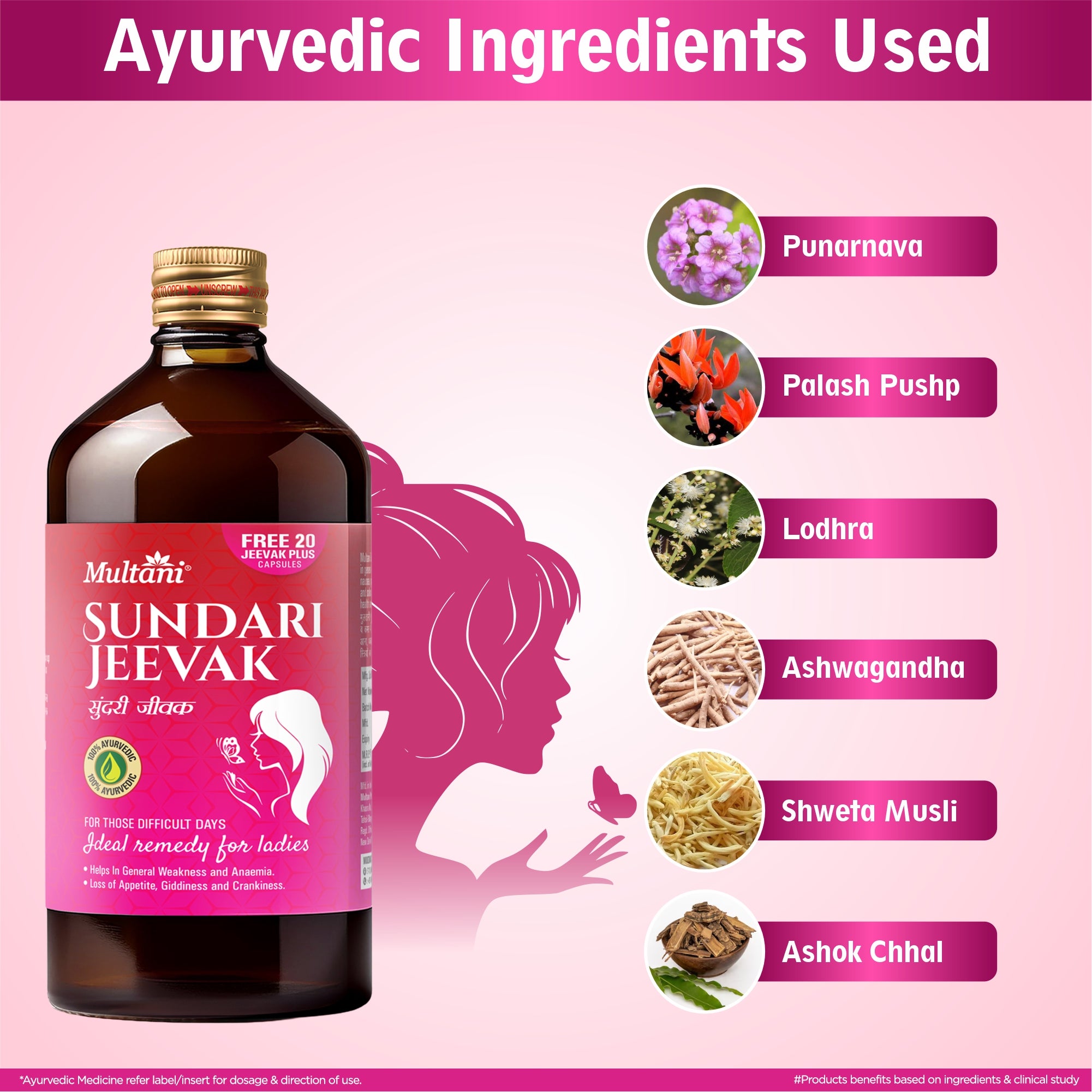Generic Product Name: Multani Sundari Jeevak (200 ml) & Multani Sarvin Syrup (100 ml) Women Combo Care Pack For General Weakness & Anaemia
