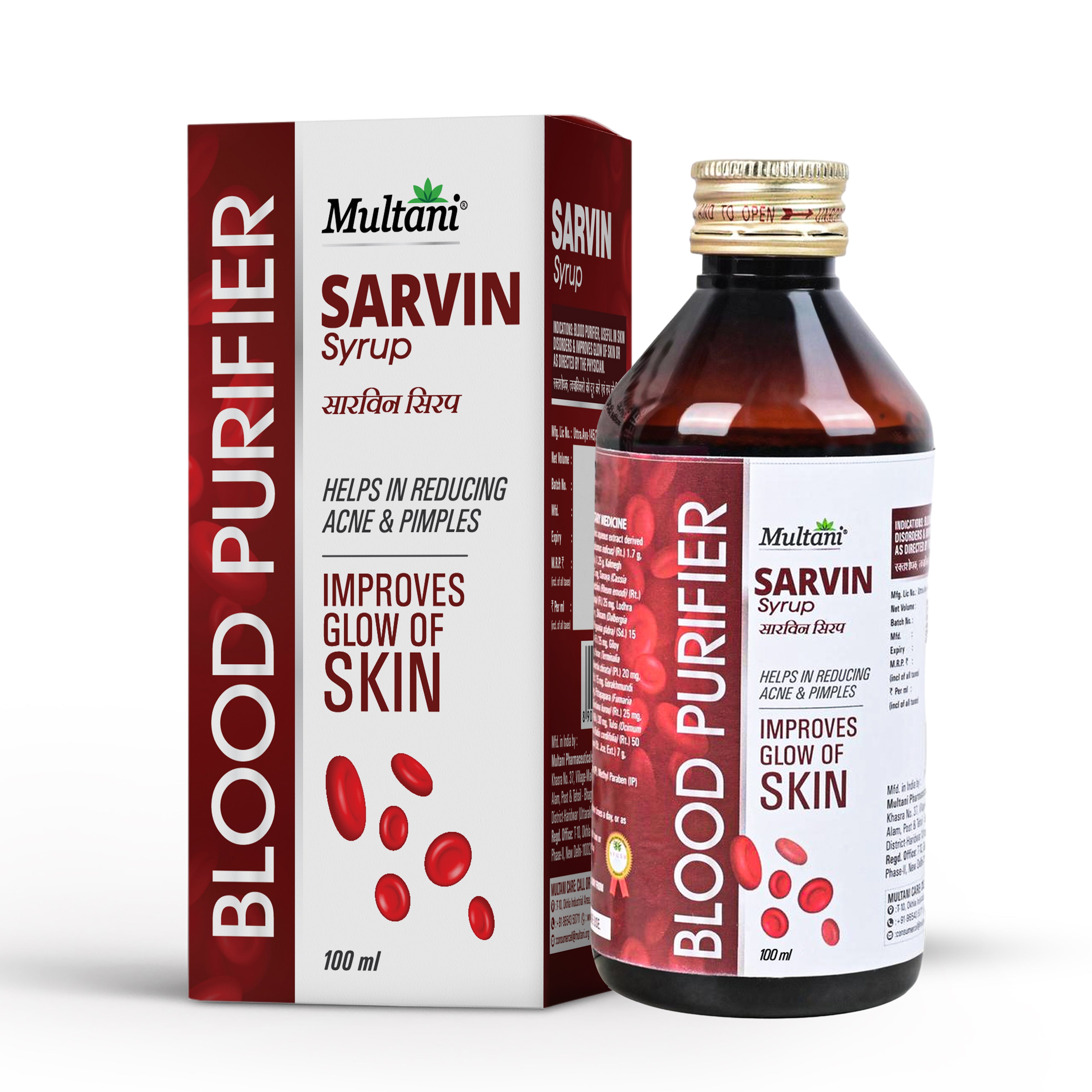Multani Sarvin Syrup works on purifying the blood, correcting skin imbalances, and enhancing the natural glow of the skin.