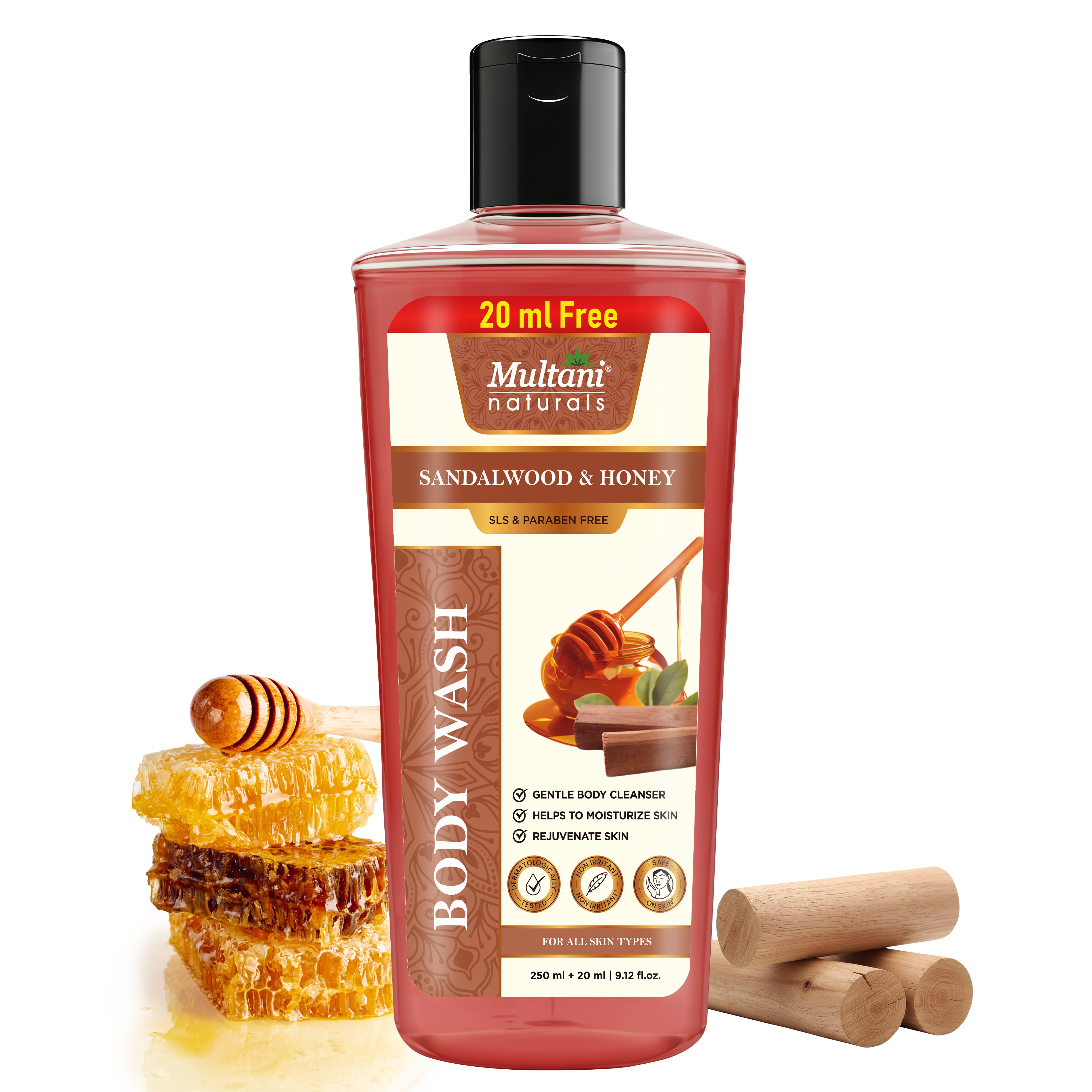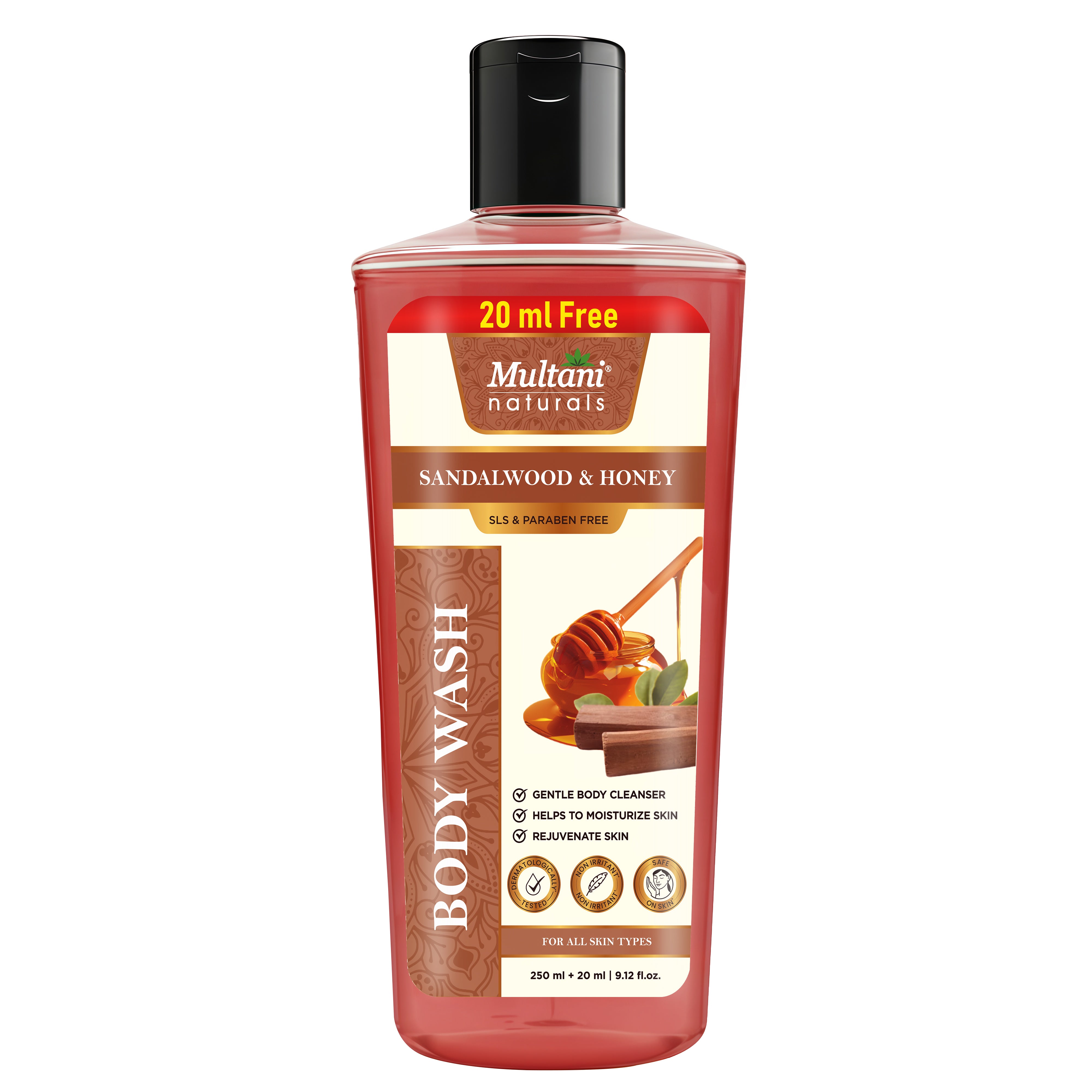 Generic Product Name: Multani Naturals Sandalwood & Honey Body Wash | Gentle Body Cleanser| Helps To Moisturize Skin | Rejuvenate Skin ||