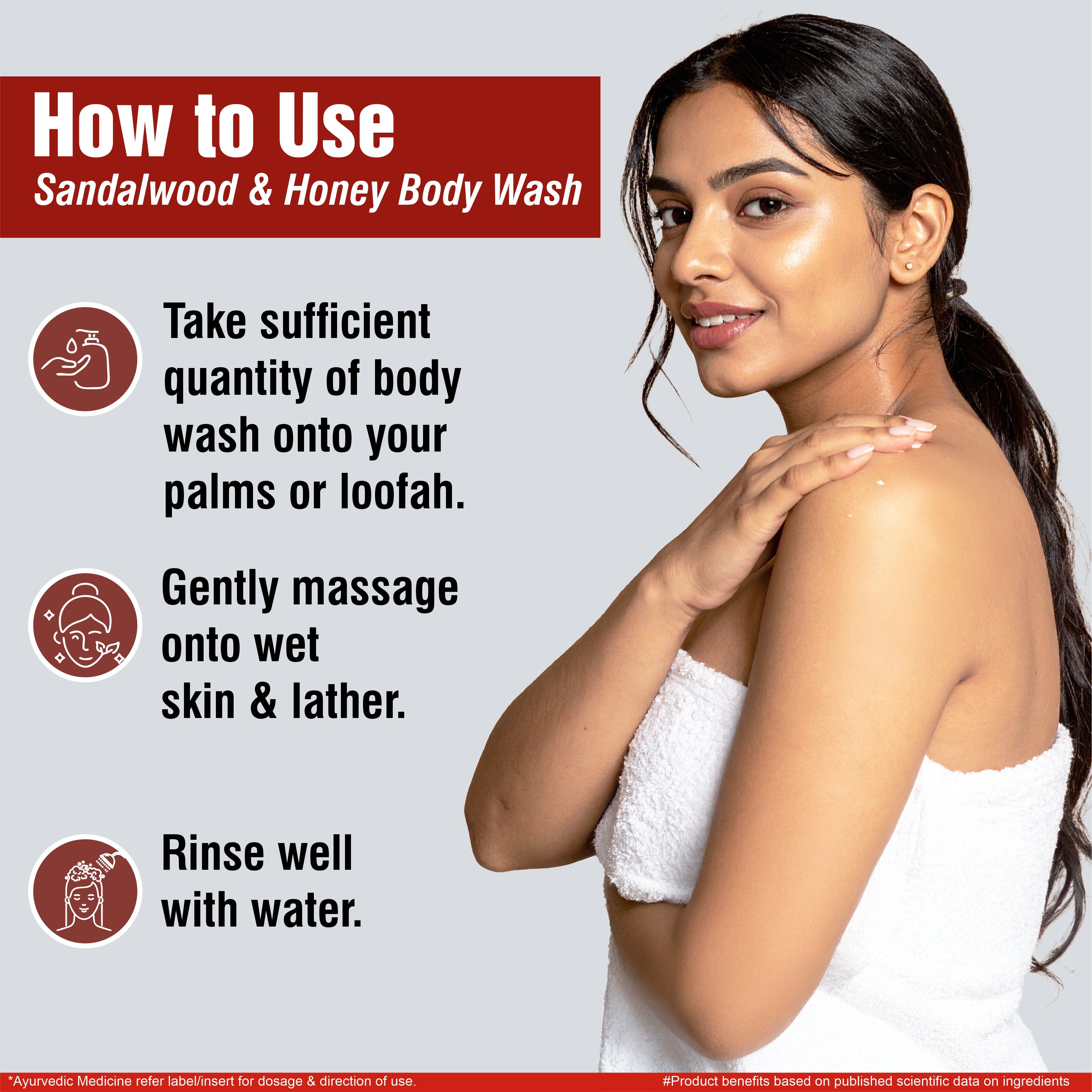 3 Work into a rich lather and gently massage all over the body.