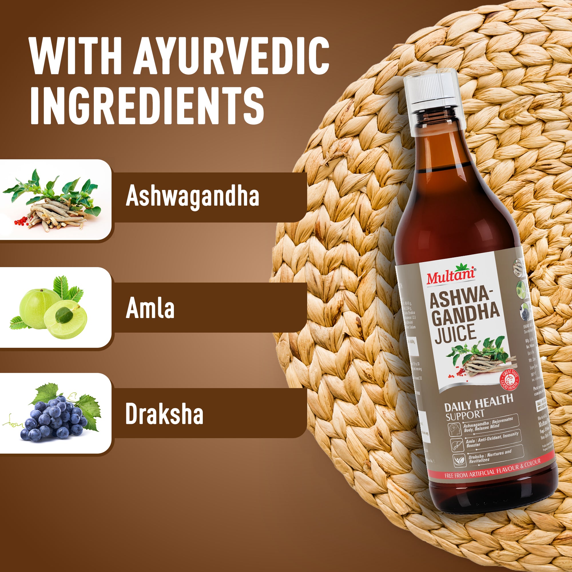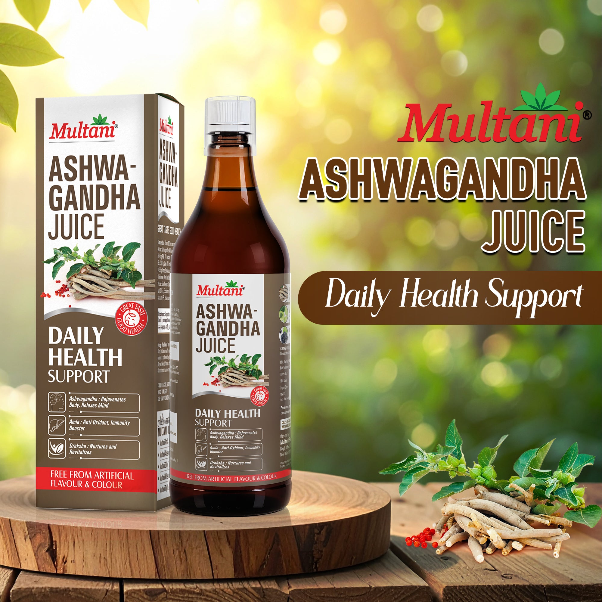 Generic Product Name: Multani Ashwagandha Juice 1 Litre| Natural Rejuvenator for Body & Mind | Antioxidant & Immunity Support