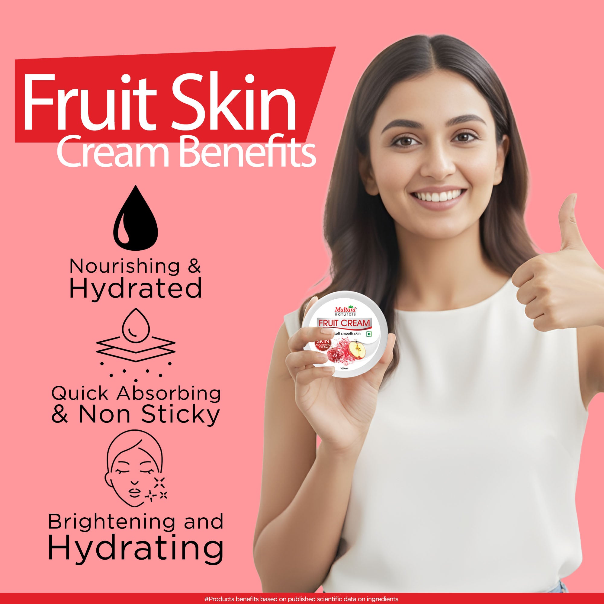 Generic Product Name: Multani Naturals Fruit Skin Cream | Nourishing & Hydrated | Quick Absorbing & Non Sticky Moisturizer for Face, Hands & Body | For Healthy, Soft & Glowing Skin