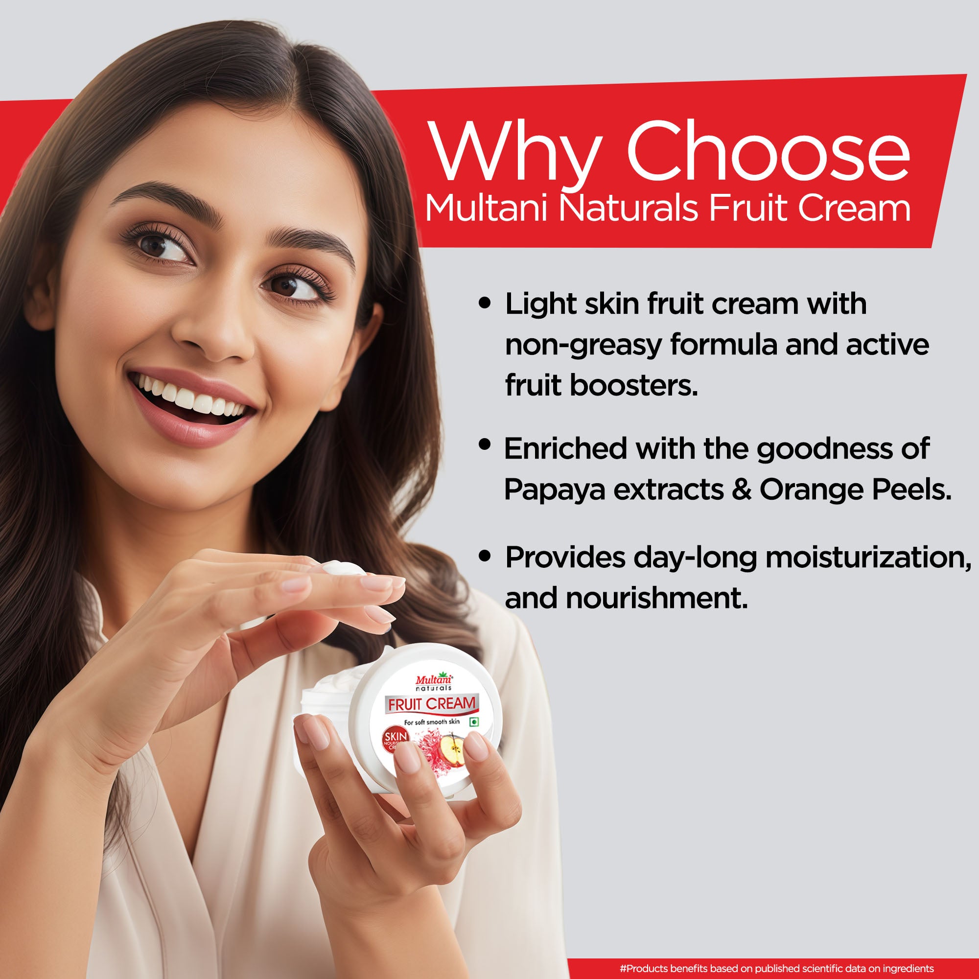 Multani Naturals Fruit Skin Cream | Nourishing & Hydrated | Quick Absorbing & Non Sticky Moisturizer for Face, Hands & Body | For Healthy, Soft & Glowing Skin - 100 ML(1.2/ Per ML)