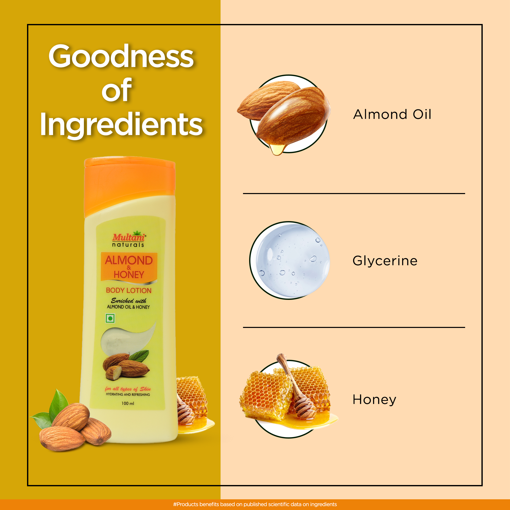 3 Finish with Almond & Honey Body Lotion on body & hands.