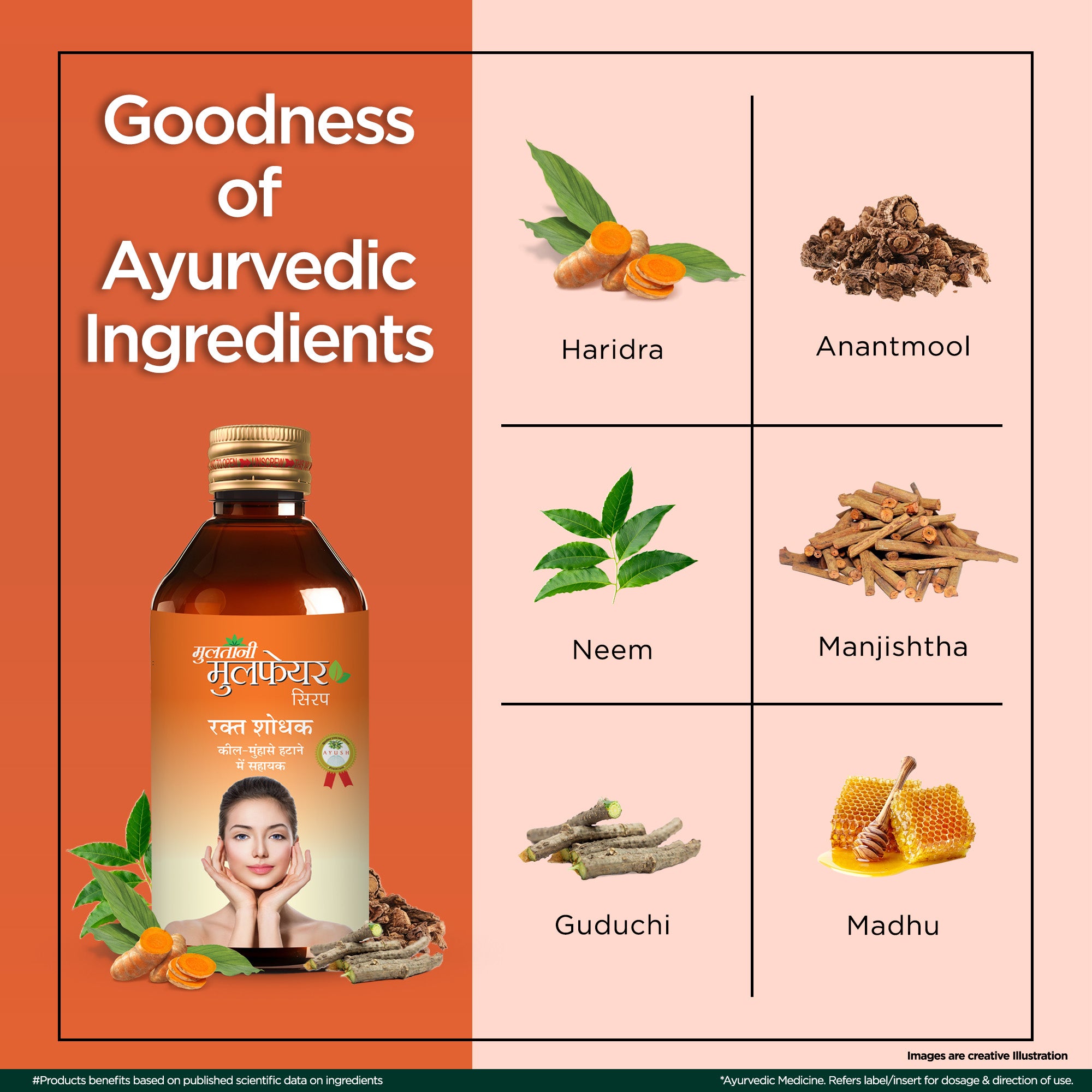 हरिद्रा, अनंतमूल, नीम, मंजिष्ठा, गुडूची, मधु, भृंगराज, चिरायता आदि।