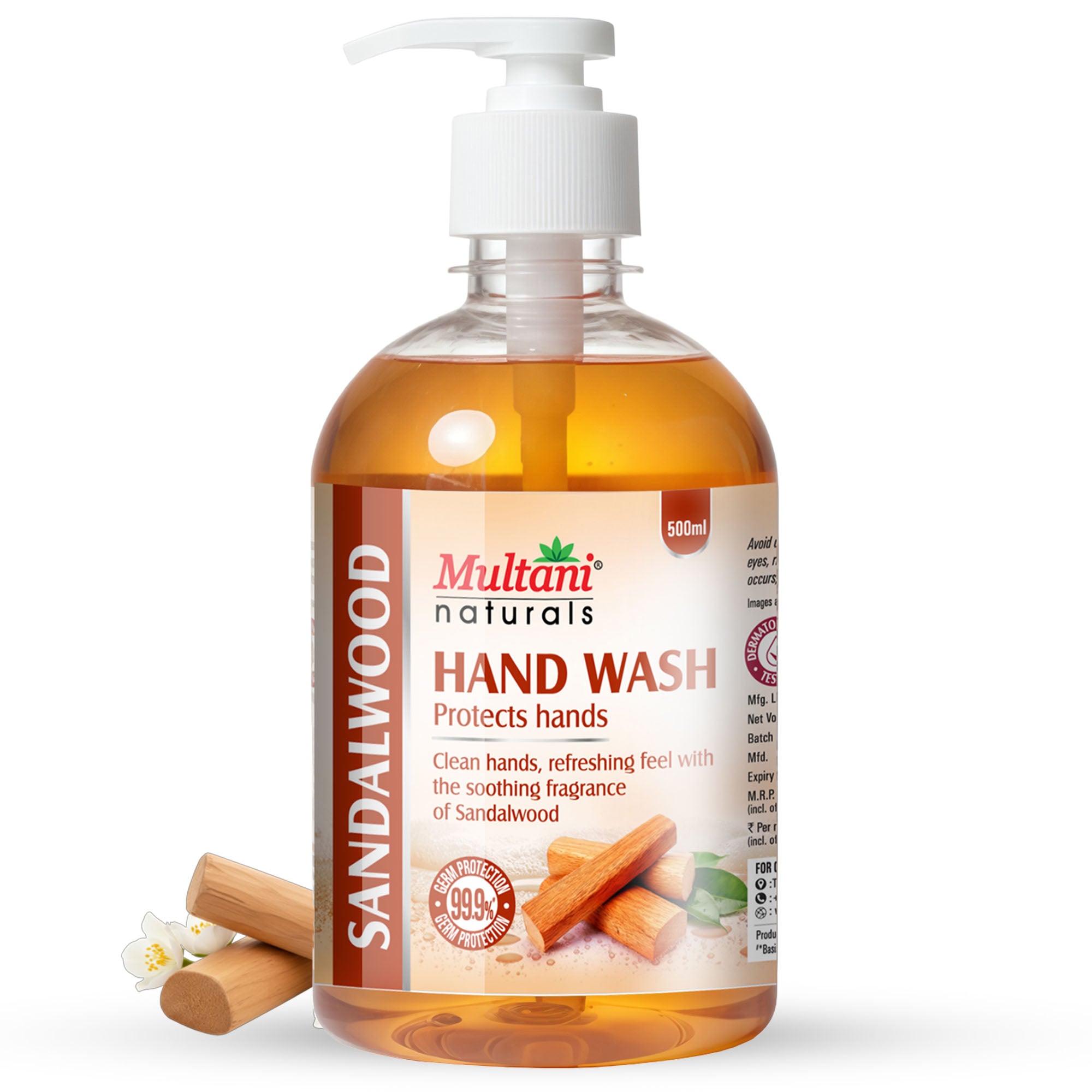 Generic Product Name: Multani Naturals Hand Wash Sandalwood | Clean Hands,| Refreshing feel with the soothing fragrance of Sandalwood | 99.9% Germ Protection
