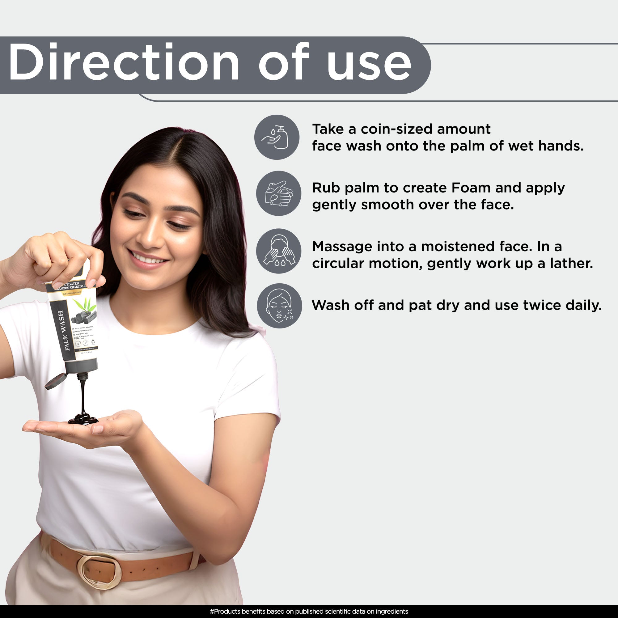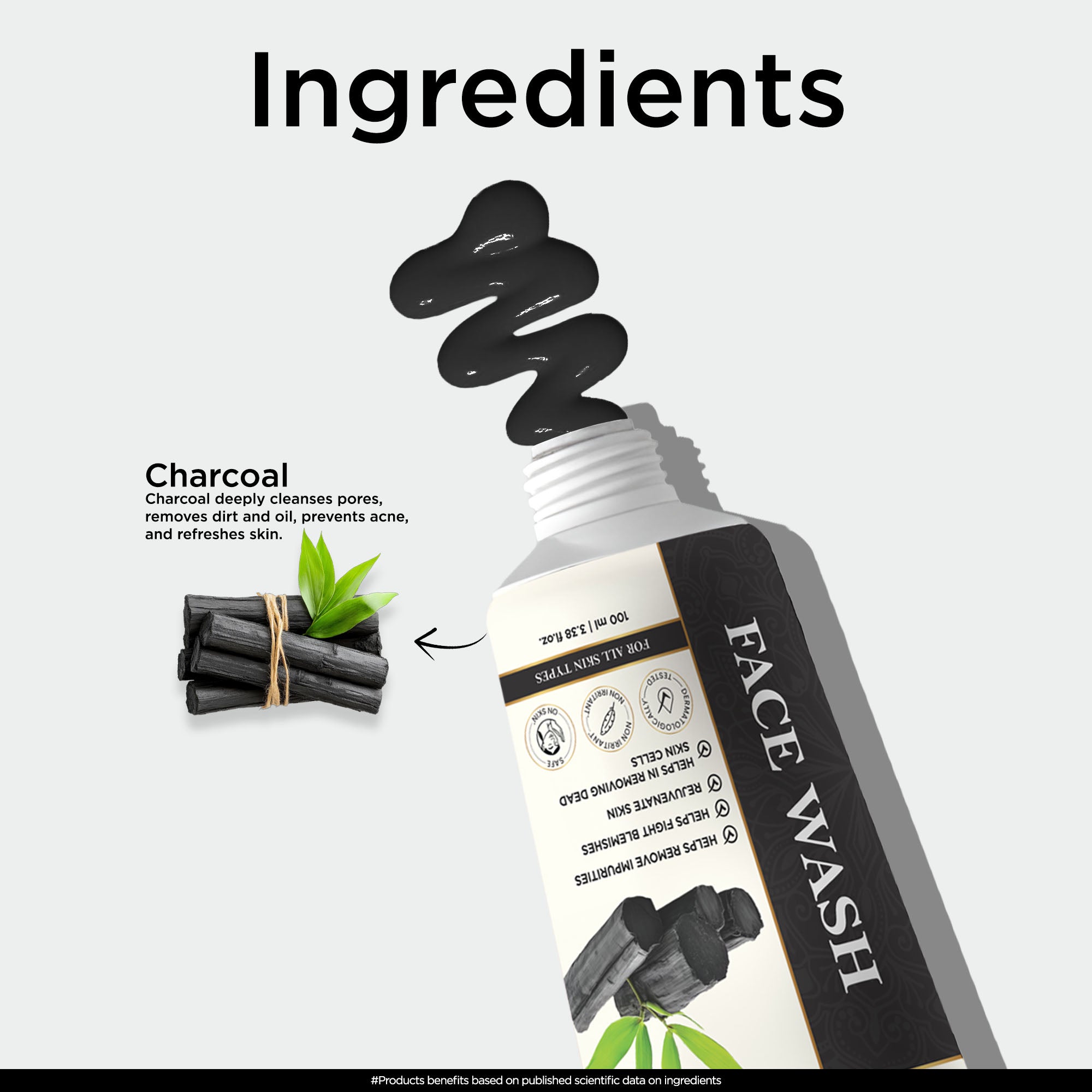 Multani Naturals Charcoal Face Wash for Men & Women | Detox & Deep Cleanse with Activated Bamboo Charcoal | Oil-Control, Acne-Prone Skin | 100 Ml - 100 ML(1.99/ Per ML)