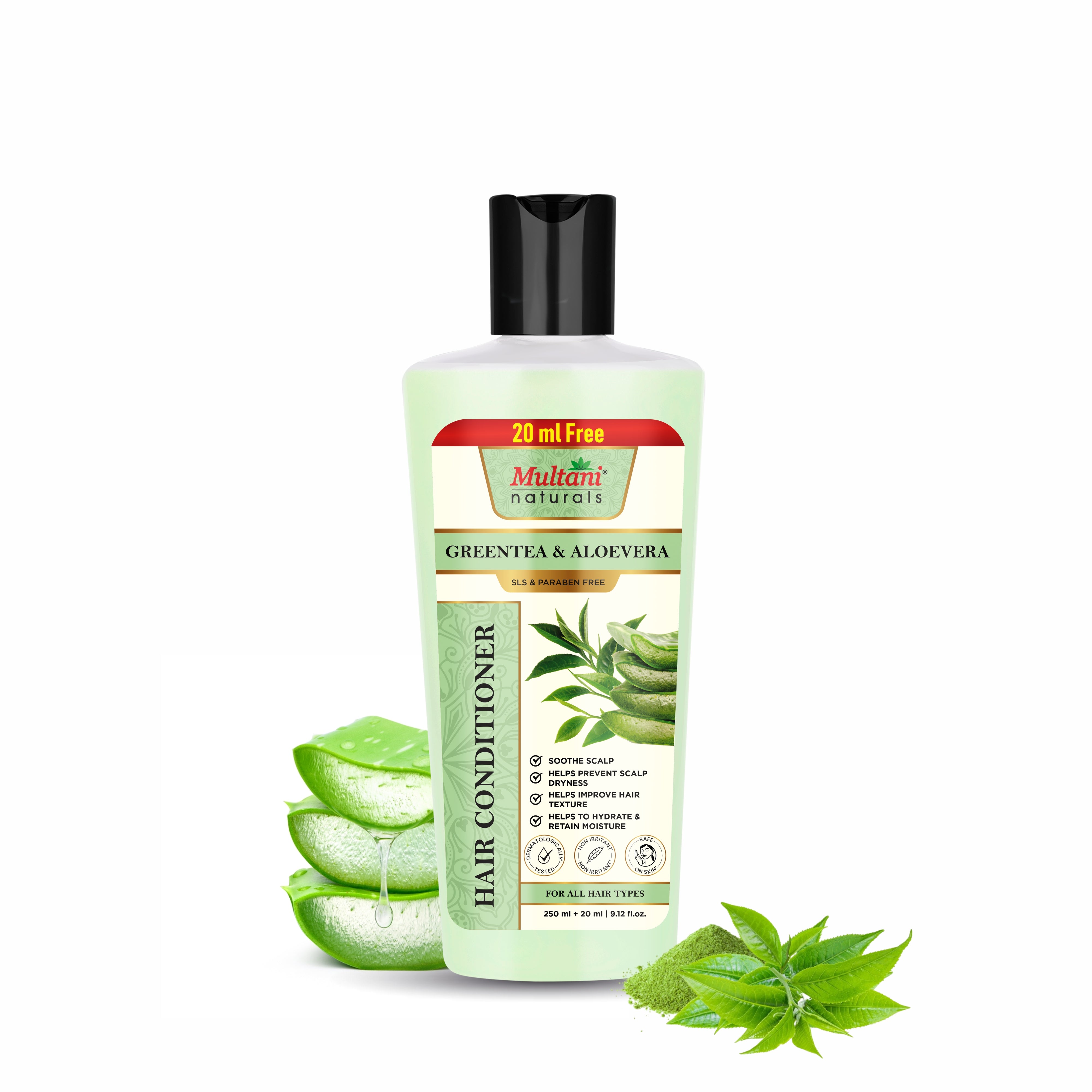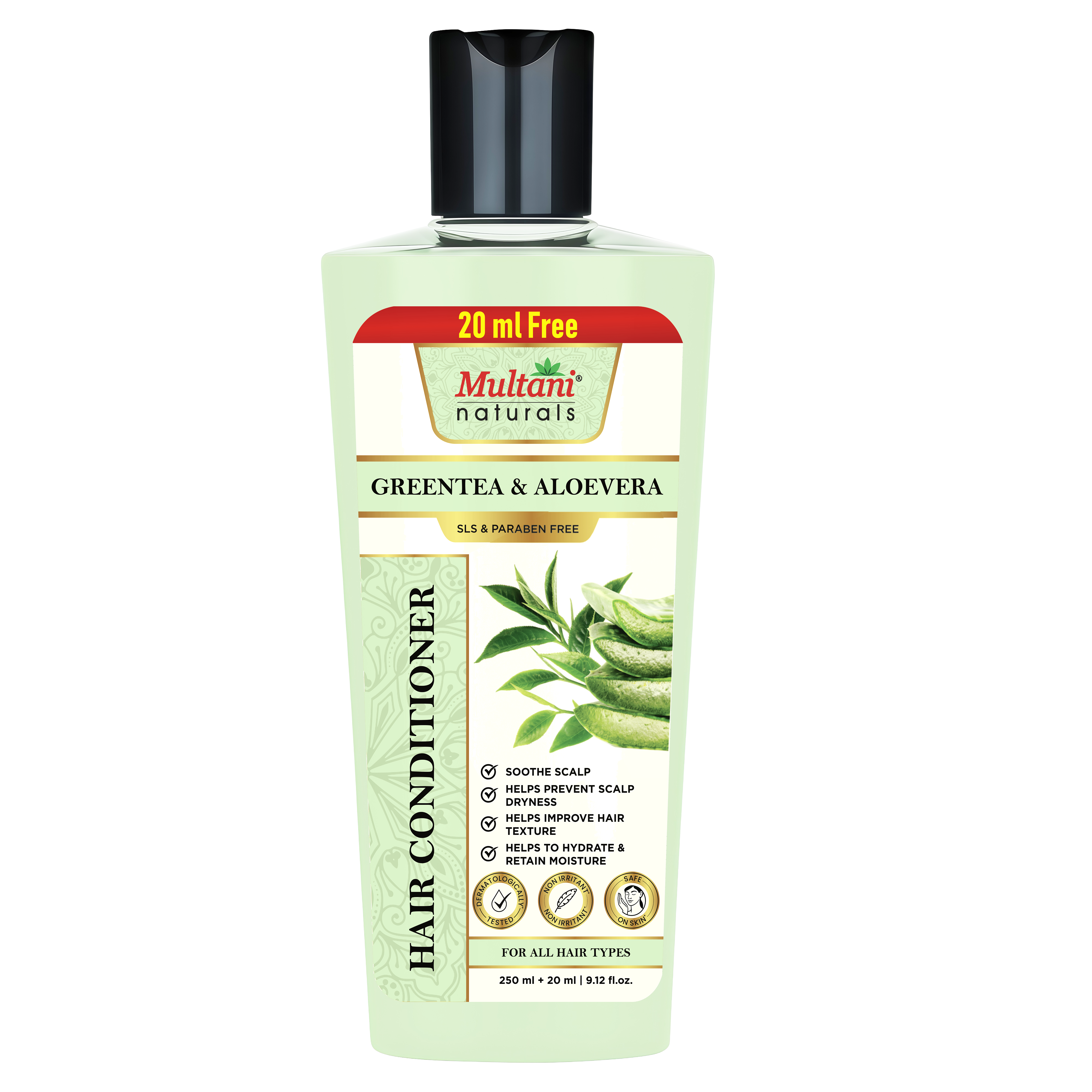 Multani Naturals Greentea & Aloevera Hair Conditioner || For Reducing Hair Fall | Improving Hair Texture | Strenghtening Hair Strands | Dermatologically Tested | SLS & paraben Free | Suitable For All Hair Types - 270 ML(1.10/ Per ML)