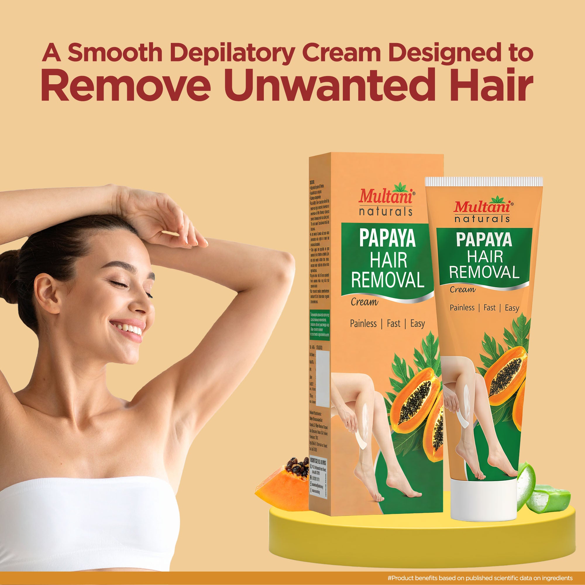 Generic Product Name: Multani Naturals Papaya Hair Removal Cream | Painless & Easy Cream