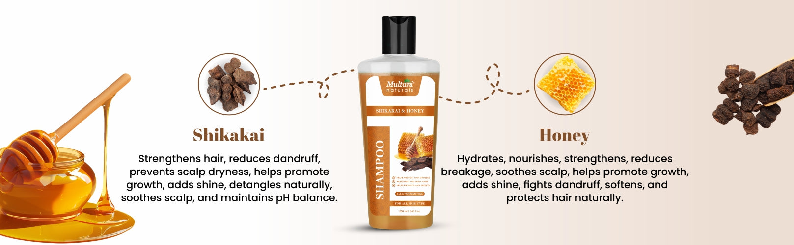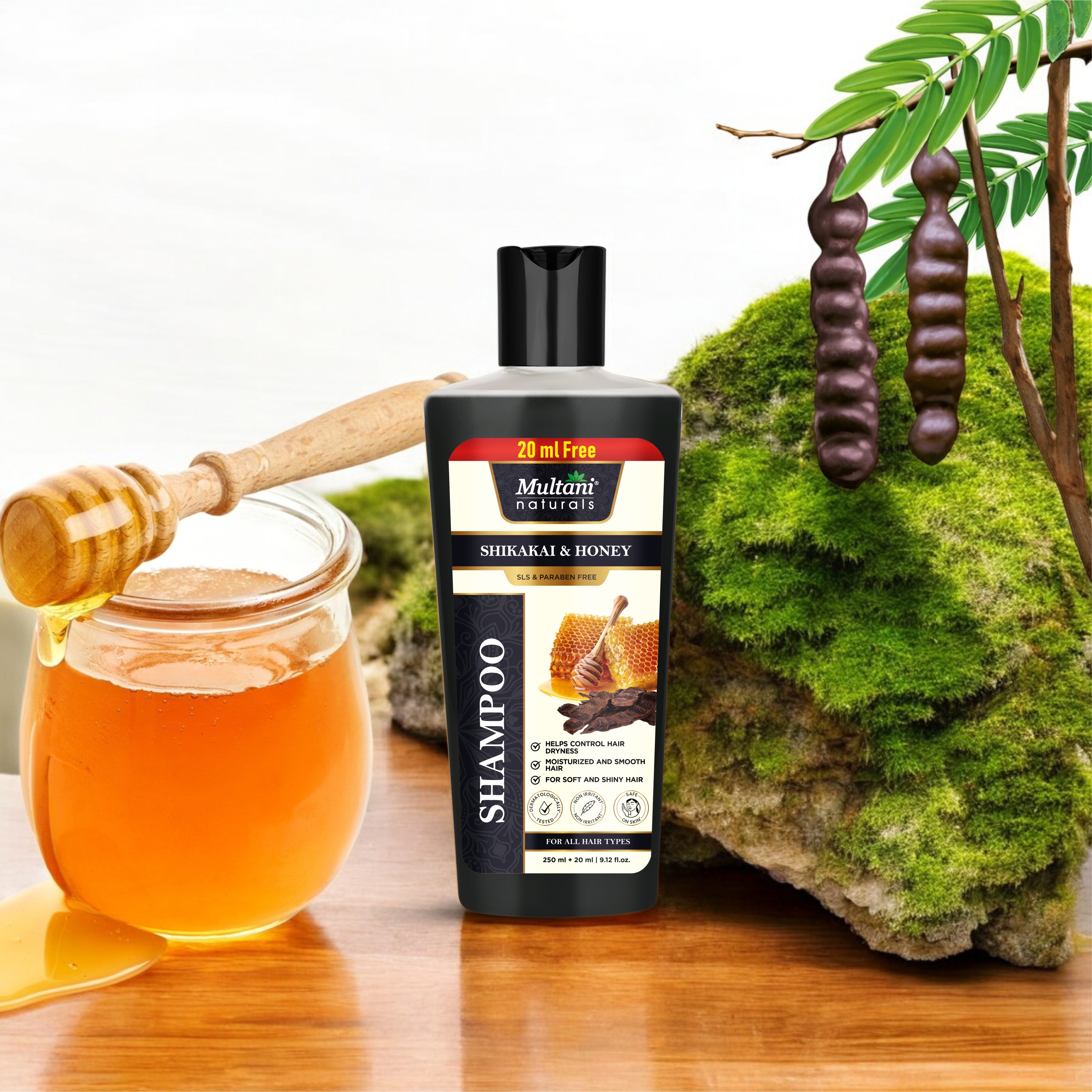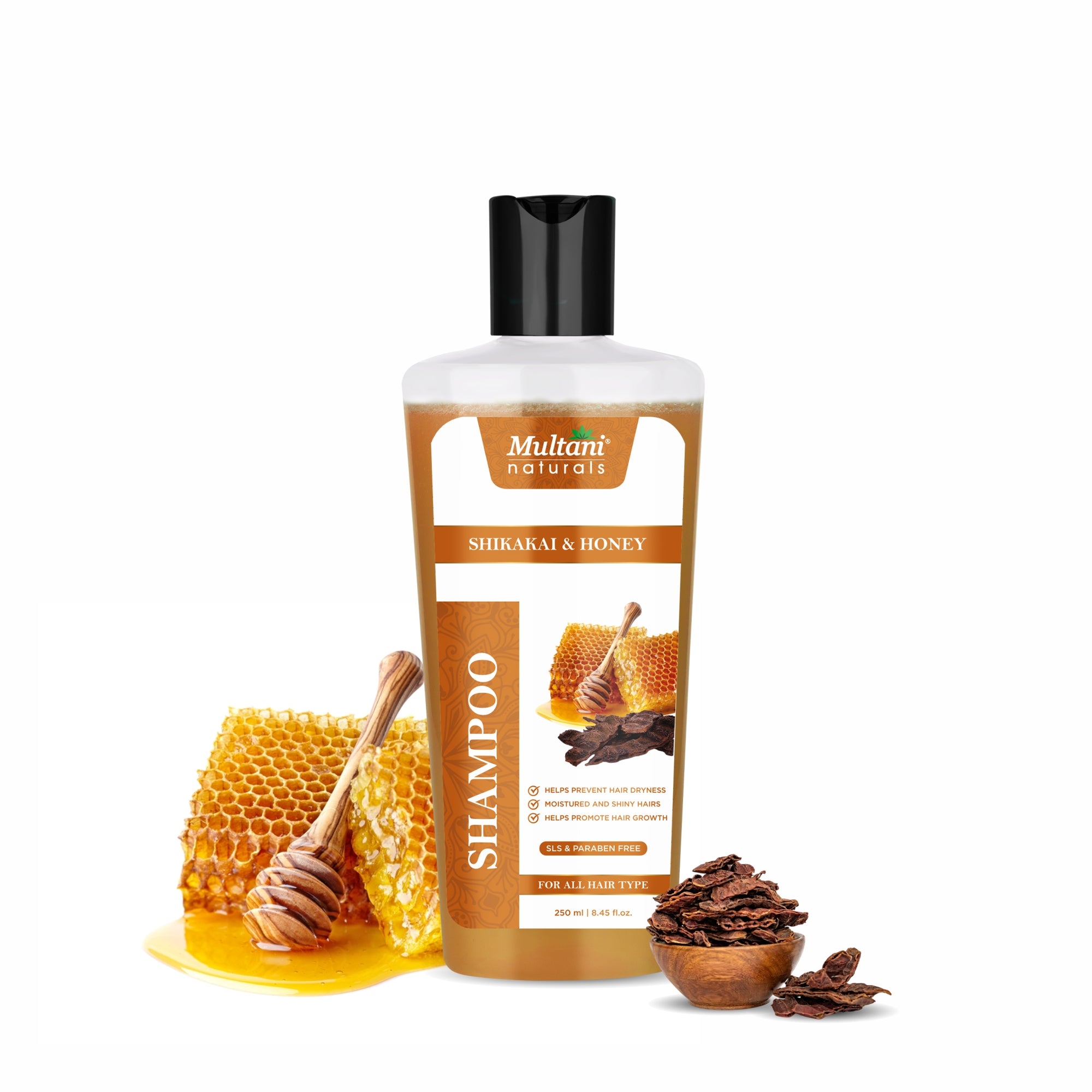 Multani Naturals Shikakai & Honey Shampoo || For Shiny Looking Hair | Reduces Scalp Dryness | Detangles hair |Makes hair manageable | SLS & Paraben Free | For All Hair Types | Dermatologically Tested - 270 ML(0.98/ Per ML)