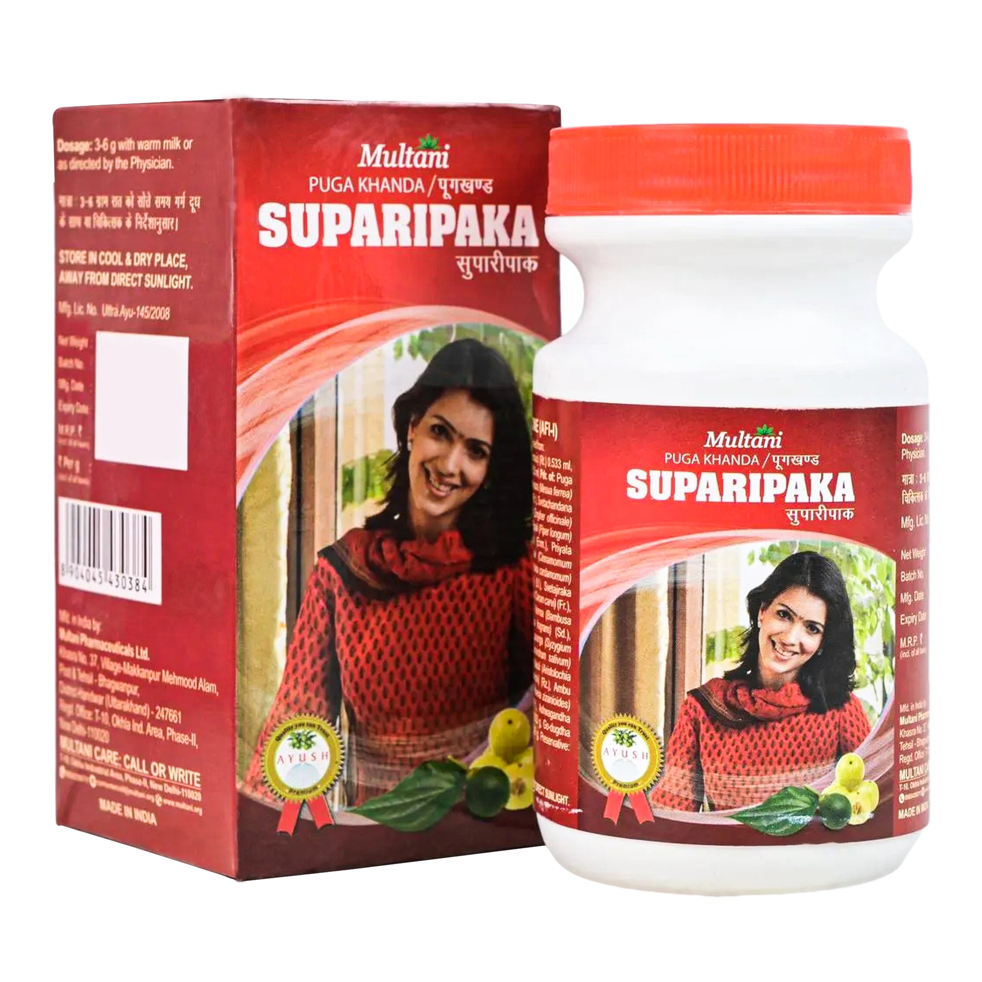 PUGA KHAND (SUPARIPAK) is an ayurvedic and herbal medicine. PUGA KHAND (SUPARIPAK) is a Ayurvedic medicine manufactured by Multani Pharmaceuticals Ltd. It is to be taken orally. PUGA KHAND (SUPARIPAK) is used in the treatment of , weakness, and backache & for general debility.